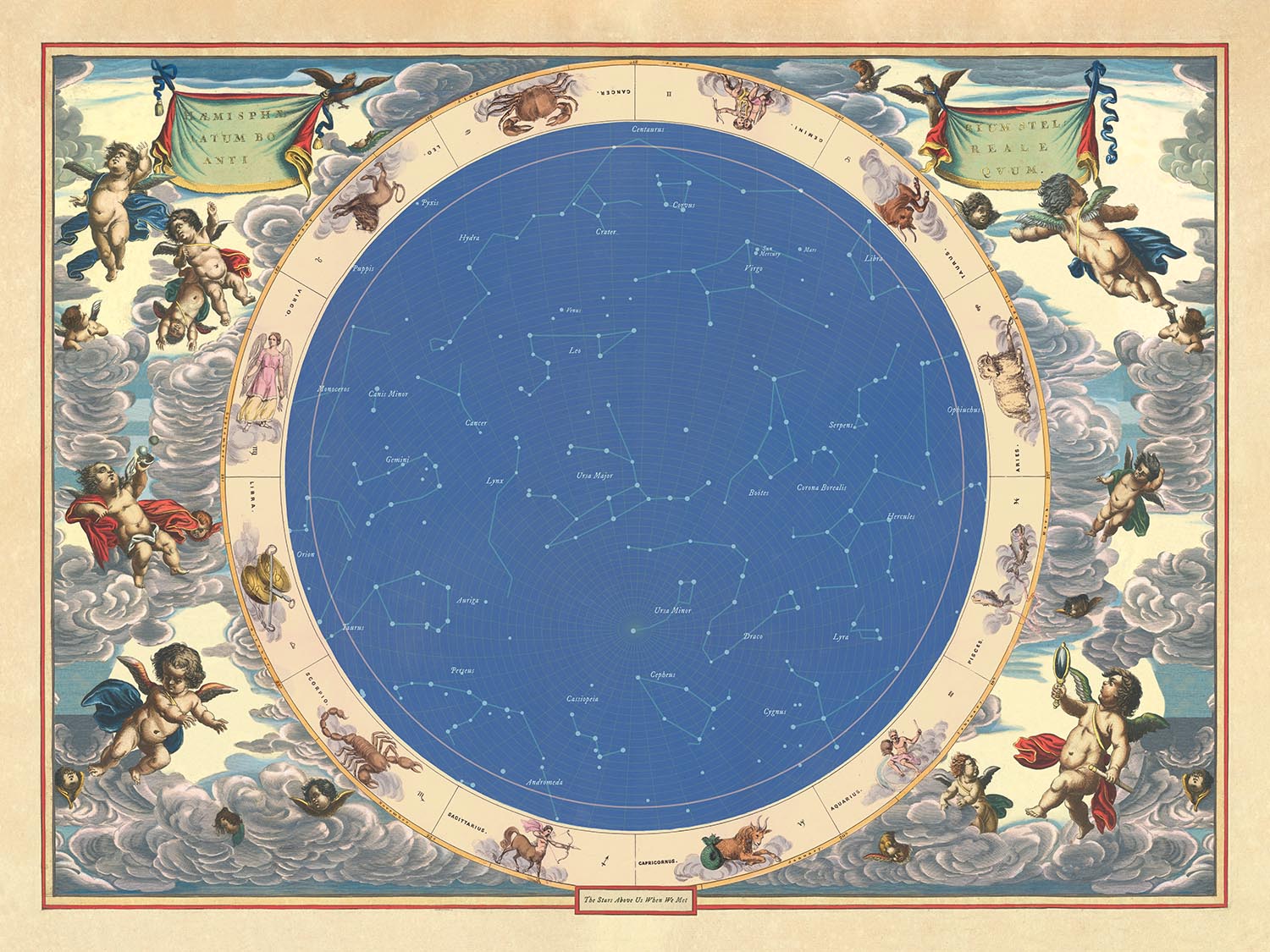 Au cas où vous vous poseriez la question, nos cartes d'étoiles uniques sont basées sur une véritable carte ancienne de 1661 réalisée par Andreas Cellarius.