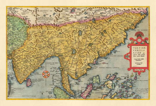 Ancienne carte de l'Inde et de l'Asie orientale, 1593 par de Jode: Chine, Népal, Laos, Thaïlande, Sri Lanka, Philippines, Malaisie