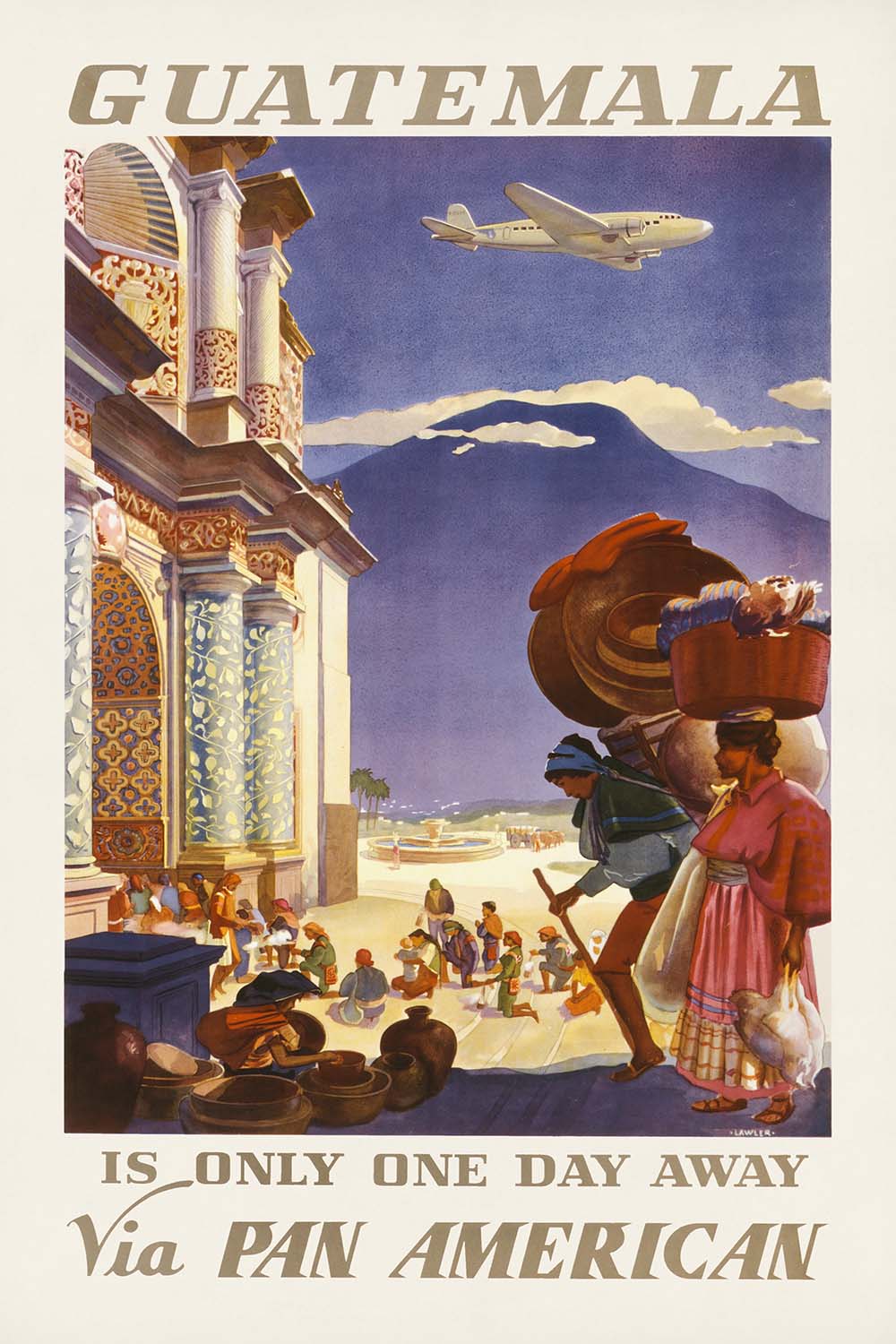 Guatemala Travel Poster: Only One Day Away via Pan American by Paul George Lawler, 1938