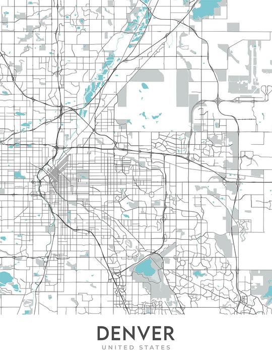 La carte englobe une portion substantielle de Denver, s'étendant du cœur animé du centre-ville aux quartiers tranquilles nichés au pied des montagnes Rocheuses. Des points de repère emblématiques tels que l'emblématique amphithéâtre Red Rocks, le vaste City Park et l'historique Larimer Square sont soigneusement marqués, invitant le spectateur à entreprendre un voyage de découverte.