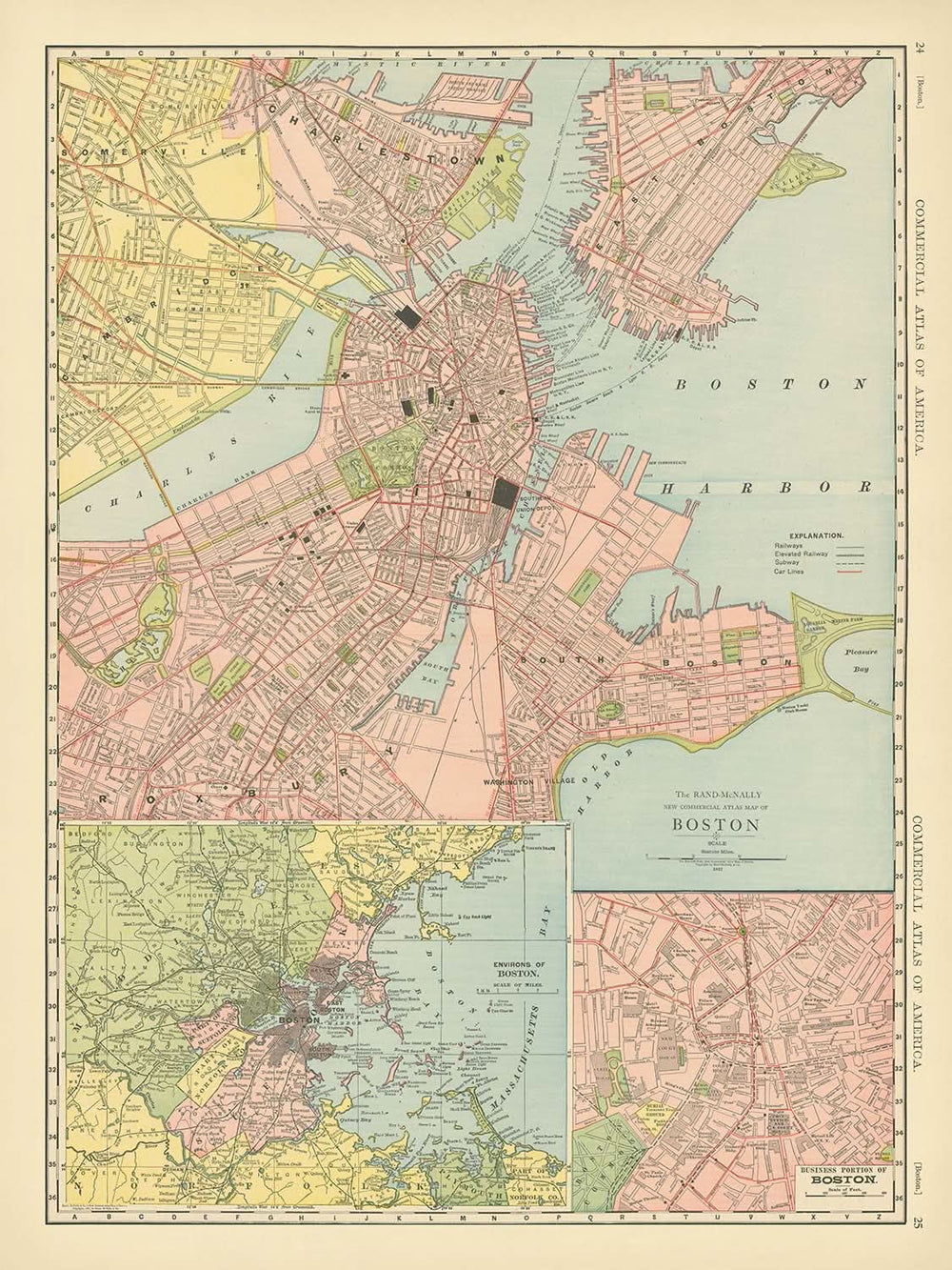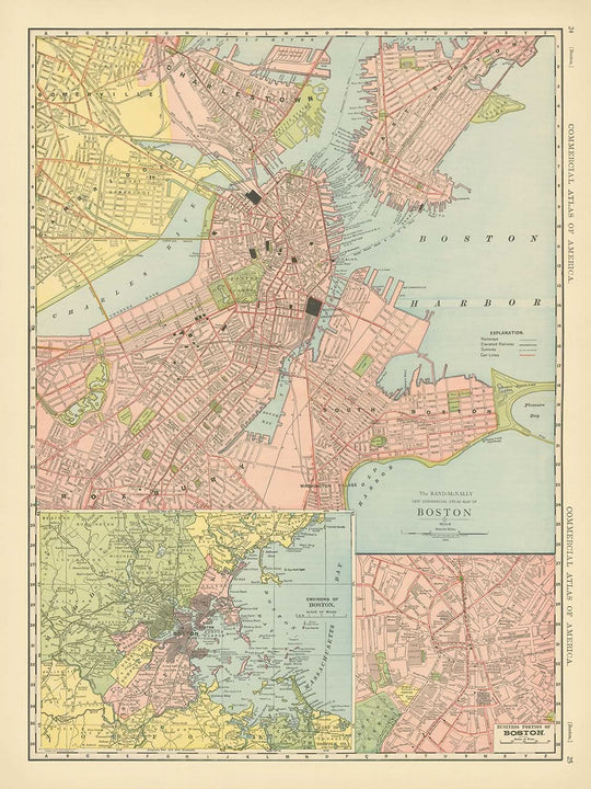 La société Rand McNally & Company, réputée pour sa précision et son talent artistique en cartographie, donne vie à Boston avec cette carte. Leur réputation de créateur de certaines des meilleures cartes d'atlas grand format de l'époque est évidente dans les détails méticuleux et la clarté présentés. Cette carte ne se contente pas de représenter les rues de la ville, elle capture également l'essence de la croissance dynamique de Boston et son rôle de plaque tournante du commerce et de la culture.