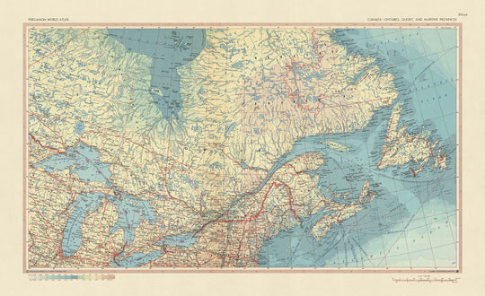 Ancienne carte du Canada, 1967: Ontario, Québec, Terre-Neuve, Labrador, Nouvelle-Écosse, Grands Lacs
