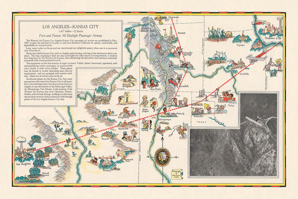 - Nom de la carte : Los Angeles-Kansas City, créée dans le cadre d'une brochure de Western Air Express.