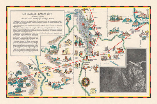 - Produite pour illustrer et promouvoir les premières routes aériennes passagers entre Los Angeles et Kansas City.