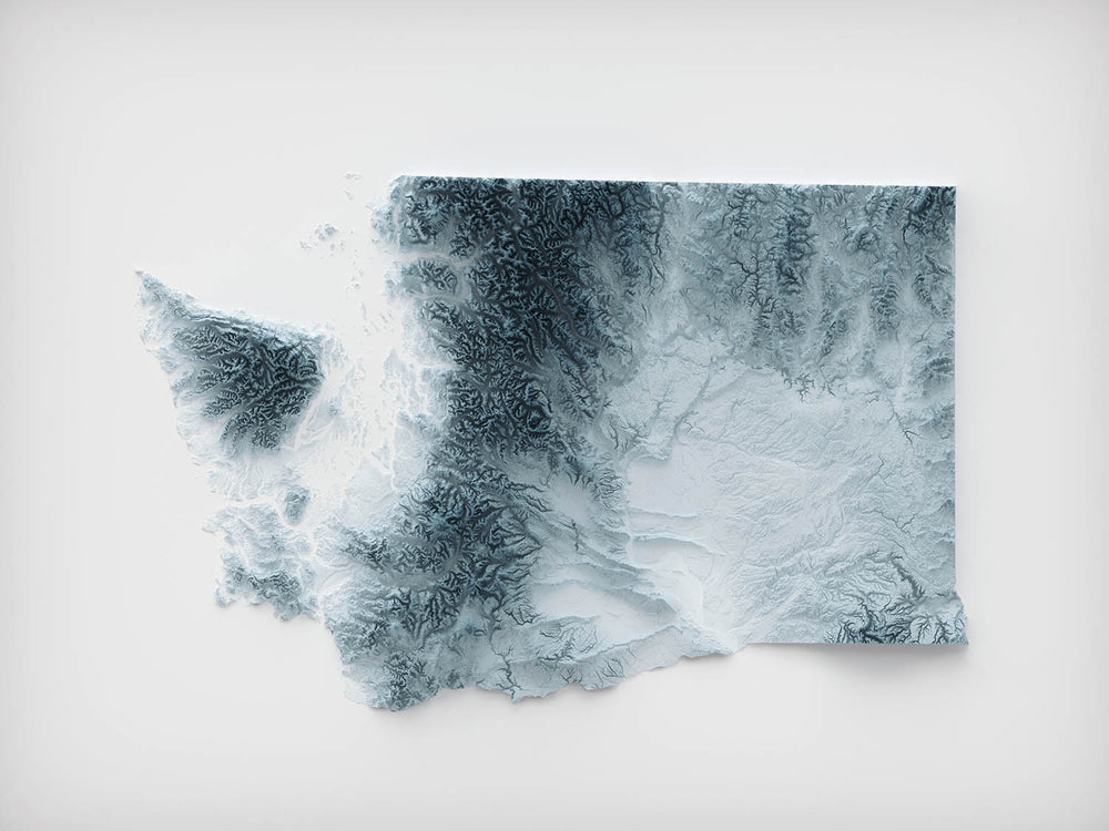 Nos impressions en relief ombragé utilisent des données topographiques ultra haute résolution et un processus de rendu 3D secret pour créer l'illusion d'un terrain surélevé — comme si les montagnes allaient se soulever de la page. Pas d'étiquettes, pas de frontières, pas de distractions. Juste la forme brute de la terre, mise en vie dans un style moderne et épuré.
