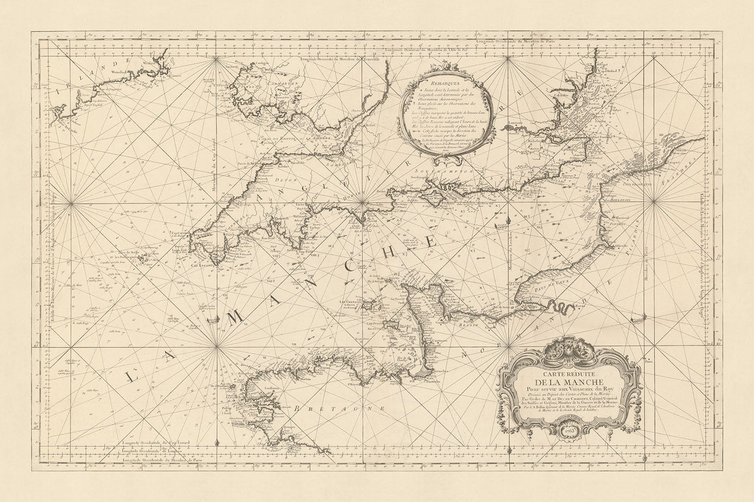 - Contexte historique: Cette carte a été réalisée pendant la guerre de Sept Ans (1756-1763). La guerre s'est déroulée entre la Grande-Bretagne et la France et leurs alliés respectifs. La guerre s'est déroulée autour d'un certain nombre de questions, notamment le contrôle des colonies nord-américaines et des Caraïbes. La carte a probablement été réalisée pour aider la marine française à naviguer dans la Manche pendant la guerre.