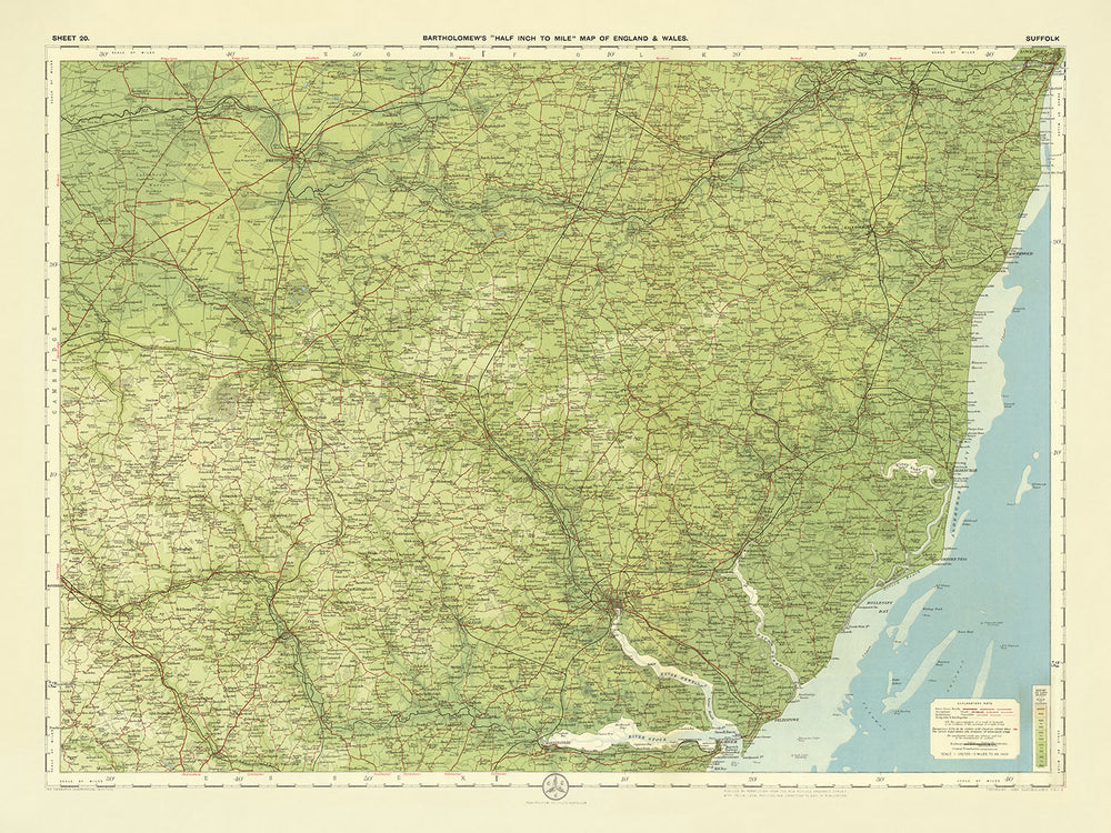 - Nom de la carte: Feuille 20 - Suffolk, carte Bartholomew d'un demi-pouce des îles britanniques