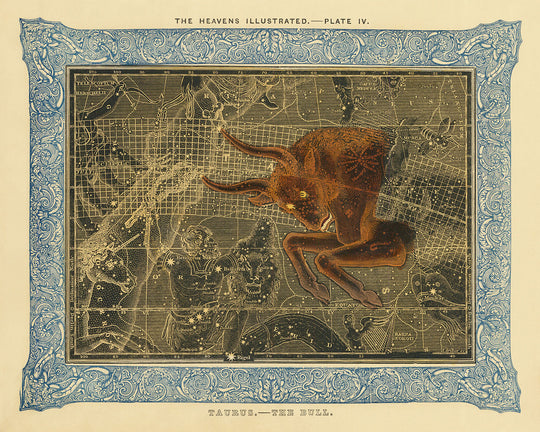 Cette splendide impression d'art du Taureau serait un merveilleux cadeau pour toute occasion – que ce soit Noël, la fête des pères, la fête des mères, une pendaison de crémaillère ou un cadeau de départ mémorable. C'est un choix parfait pour quiconque a un goût pour l'art raffiné, la cartographie historique ou les merveilles célestes.