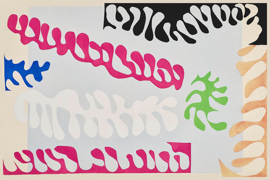 Henri Matisse était célébré pour sa capacité à transmettre une profonde émotion et de la joie à travers une synthèse de couleur et de forme. "La lagune III" illustre son habileté à transformer le banal en extraordinaire, avec ses couches de couleur ondulantes qui semblent pulser et se déplacer, créant une ambiance sereine mais dynamique. Cette pièce est notable comme faisant partie des œuvres tardives de Matisse, où il a exploré des techniques de collage et de découpage, menant à un sens du mouvement et du flux que les œuvres peintes seules peinaient parfois à atteindre. L'interaction du rose mêlée avec des touches d'eau vert aqua et les profondeurs du ciel bleu céruléen font de cette pièce un incontournable dans son œuvre.