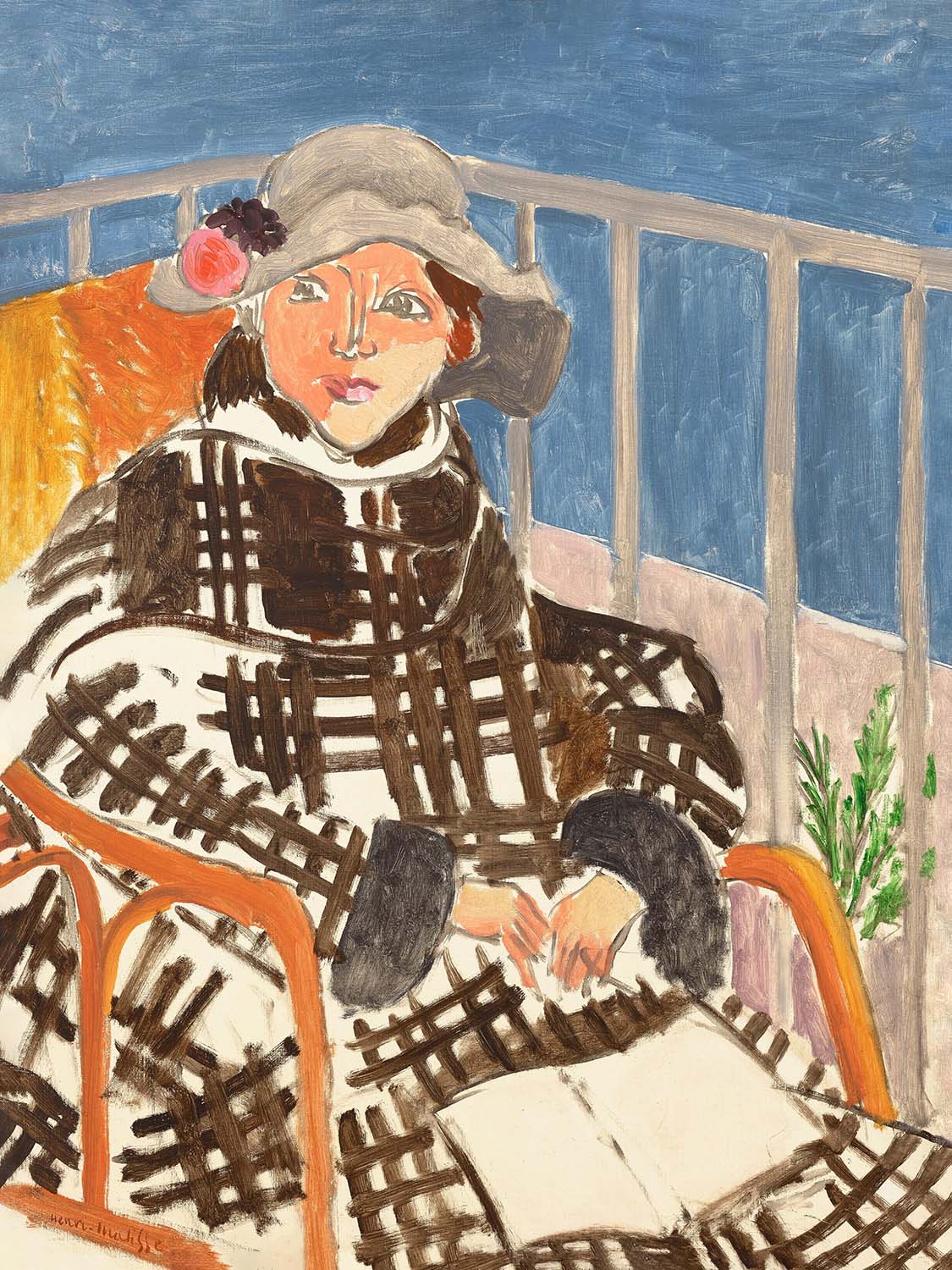 Mademoiselle Matisse en manteau écossais (Mademoiselle Matisse in a plaid coat) par Henri Matisse, 1918