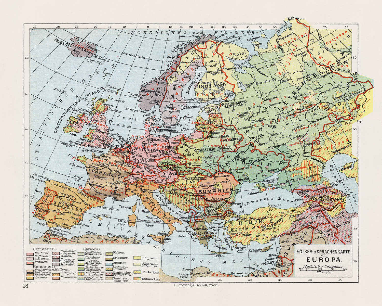 - La carte est intitulée "Volker- u. Sprachenkarte von Europa".