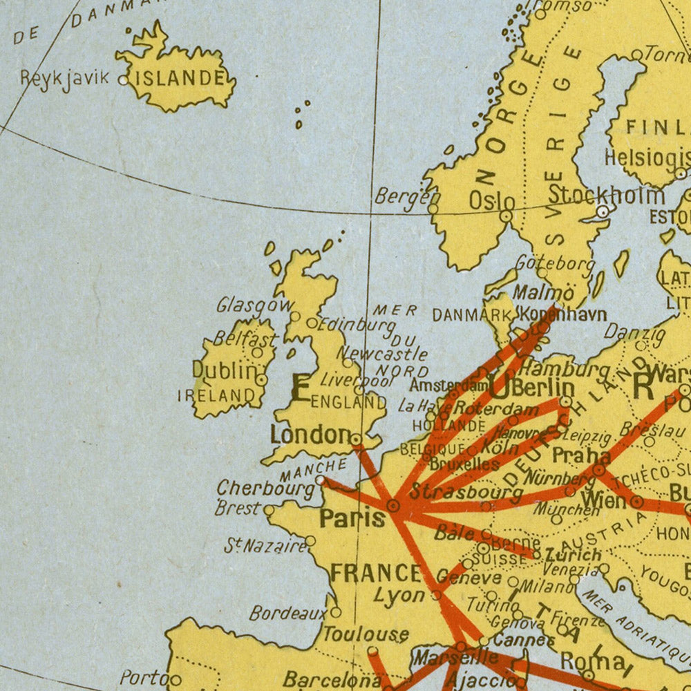 Why this artwork matters: Created in 1933—the year Air France emerged from a merger of several carriers—this poster is both advertisement and historical milestone. It reflects the shift from romantic, painterly travel scenes to direct, service‑oriented communication: a brand name, a promise of reservations, and an implicit invitation to the world. Pieces like this would have appeared in agency windows across Europe, making the dream of international flight feel immediate and attainable.