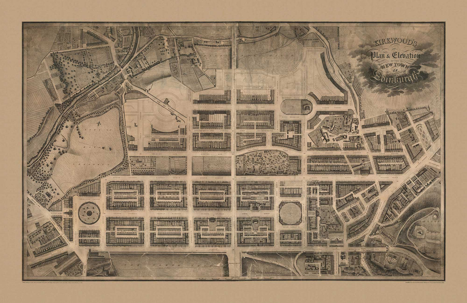 Cette merveilleuse vieille carte d'Édimbourg a été publiée à l'origine en 1821. Elle a été créée par James Kirkwood.