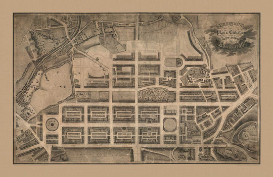 Ancienne carte de la nouvelle ville d'Édimbourg en 1821 par James Kirkwood: Calton Hill, Queen Street, York Place, Prince Street, Great King Street