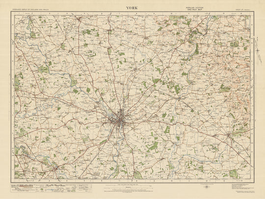 Ancienne carte de l'Ordnance Survey, feuille 27: York, 1925 : Pocklington, Tadcaster, Easingwold, Stamford Bridge, Boston Spa