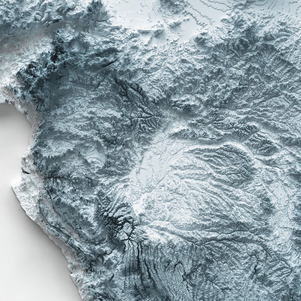 Our shaded relief prints use ultra high resolution topographic data and a secret 3D rendering process to create the illusion of raised terrain — like the mountains are about to lift right off the page. No labels, no borders, no distractions. Just the raw shape of the land, brought to life in a clean, modern style.