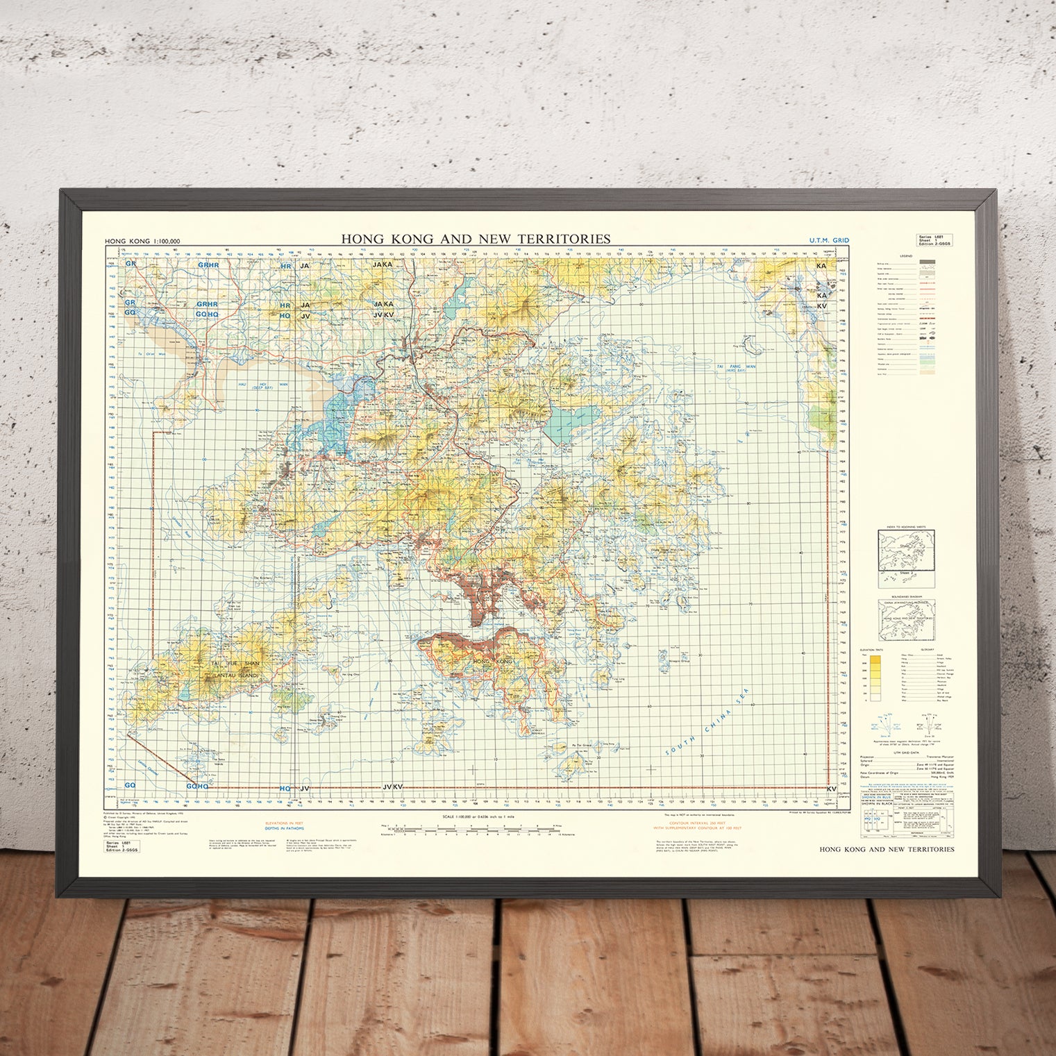 Behind it stands the Ministry of Defence’s postwar cartographic tradition—methodical, survey-driven, and designed to serve both command and civil authorities. The late 1960s were a period when Hong Kong’s strategic value was inseparable from its urban dynamics: secure borders, navigable waters, and reliable movement across mountains and bays. The map’s reliance on successive survey campaigns yields a composite accuracy—spot heights, ridge lines, and shorelines reconciled to new roads and rail alignments—ideal for planning tunnels, depots, and arterial connections. It is a document of governance as much as geography: an instrument for coordinating services, hazard response, and expansion in one of the world’s most topographically challenging cities.