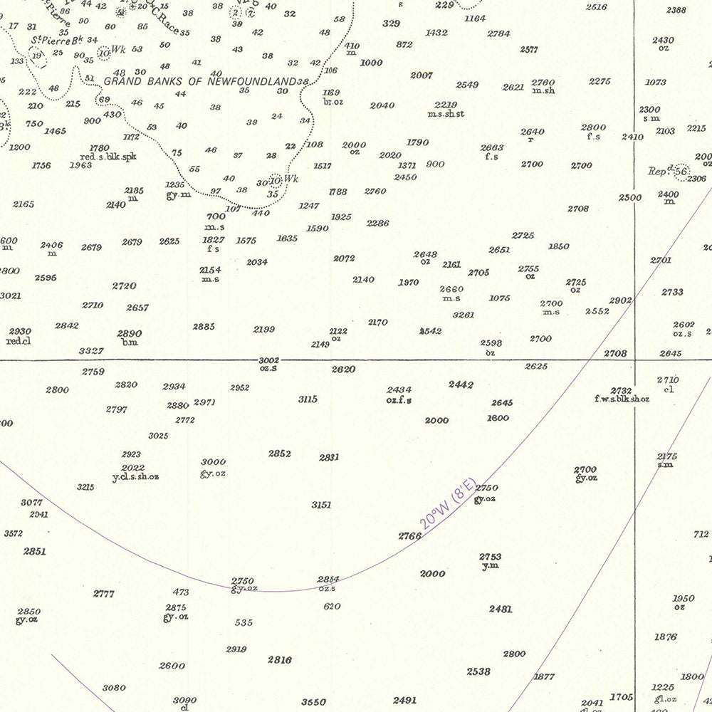 As a product of the British Admiralty—whose Hydrographic Office set the global standard for sea charts since the early nineteenth century—this edition embodies a cartographic language prized for its reliability and restraint. It bridges eras: conceived in the age of sail and steam, refined through the rise of modern merchant fleets, and still relevant on the cusp of satellite navigation. By uniting measured depths, codified symbols, and the accumulated habits of ocean travel, it offers not just a record of the North Atlantic but a framework for mastering it—linking the Atlantic coasts of Canada and the United States to Greenland, Bermuda, and the Azores in one coherent, navigable whole.