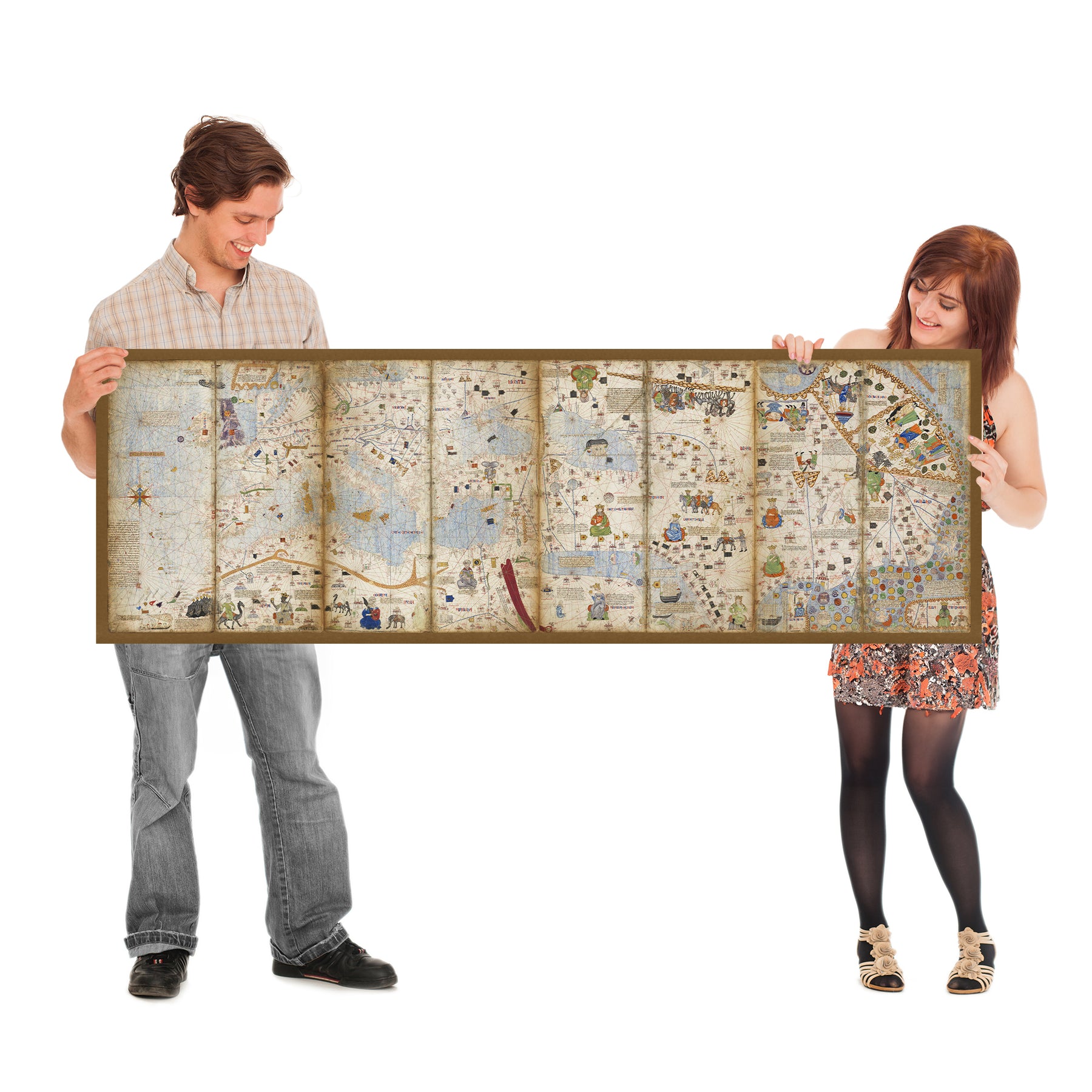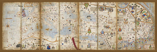 - Detailed depictions of trade routes and a variety of human figures representing different cultures