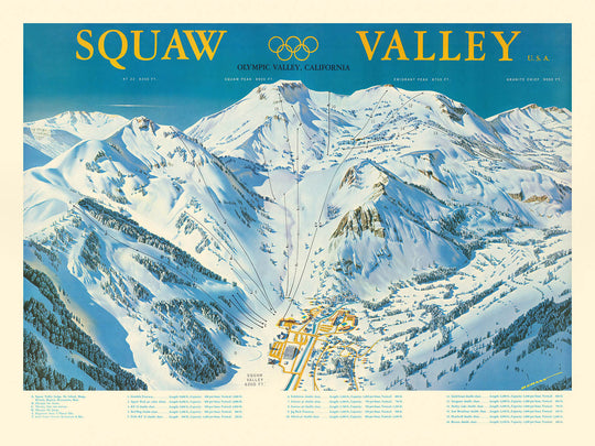 Old Pictorial Map of 1960 Winter Olympics, Squaw Valley USA: Aerial Tramway, Olympic Village, Granite Chief