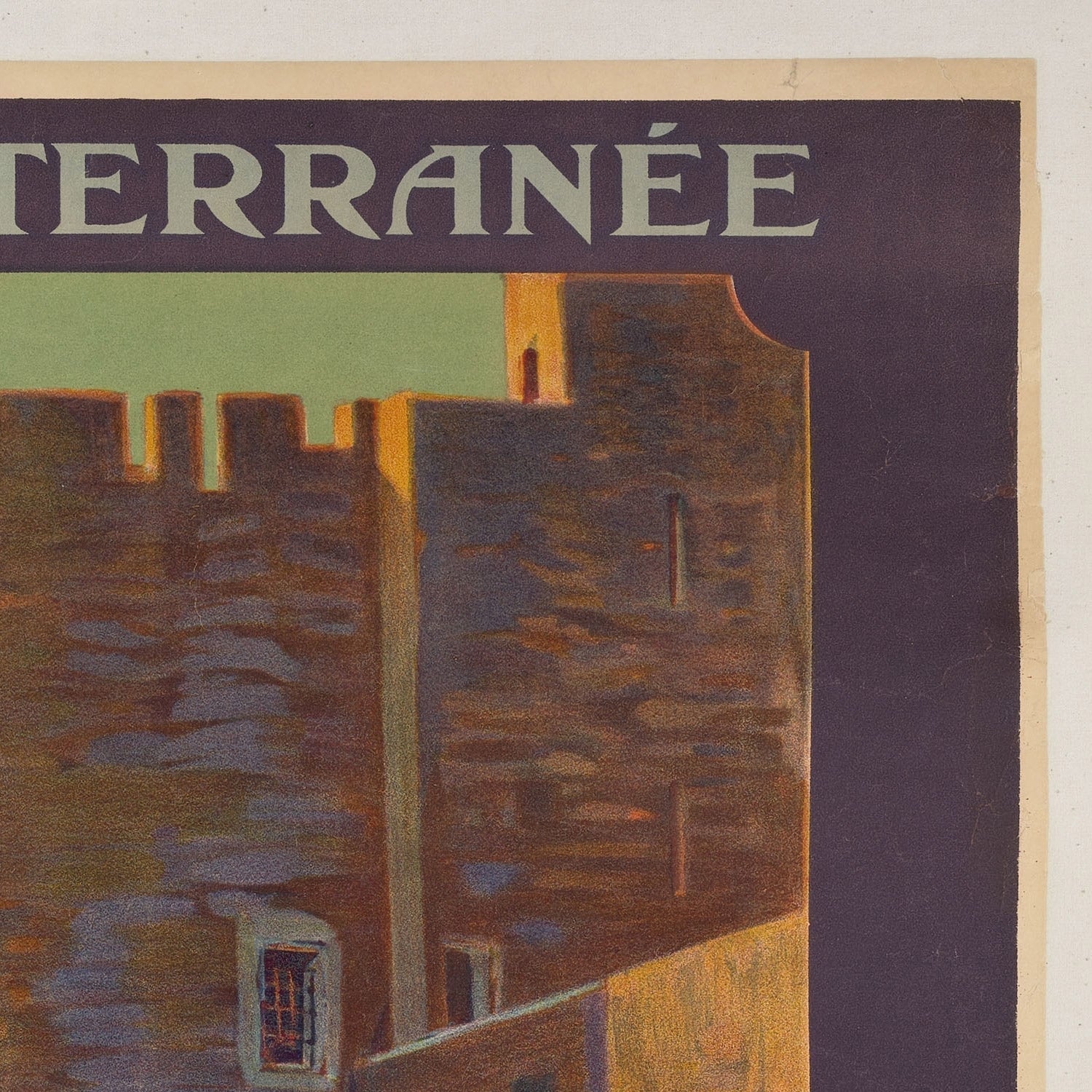 About the artist: Ernest Couronneau was a French illustrator and poster artist active in the 1910s–1920s, working in the golden era of lithographed travel advertising. His work reflects the confident geometry and elegant restraint of early Art Deco, favoring clear silhouettes, clean lettering, and balanced color fields. Couronneau’s southern subjects—coastal towns, fortified cities, and pastoral vistas—were crafted to entice the new wave of travelers exploring France’s historic regions.
