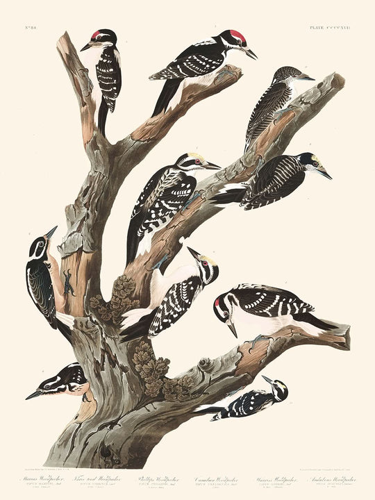Il Picchio di Maria, il Picchio tridattilo, il Picchio di Phillips, il Picchio canadese, il Picchio di Harris, il Picchio di Audubon (Tavola 417) cattura l'essenza delle vivaci e intricate illustrazioni presenti nella rinomata collezione di John James Audubon, "Uccelli d'America." Creata nel 1827, questa illustrazione offre uno sguardo sulle meraviglie aviarie meticolosamente documentate da Audubon—una testimonianza della sua dedizione a comprendere e rappresentare il mondo naturale.
