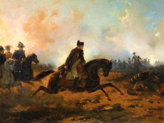 Hippolyte Bellangé (1800–1866) was one of 19th-century France’s preeminent painters and printmakers of military subjects. Celebrated for his exacting knowledge of uniforms and battlefield detail, he brought the pageantry and peril of the Napoleonic era to life for Salon audiences and collectors throughout Europe. His work sits squarely within the Romantic tradition: dramatic lighting, dynamic composition, and a keen sense for the human drama of war.