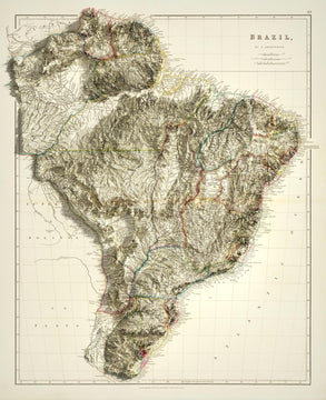 Una magnifica mappa del Brasile, pubblicata originariamente nel 1832, che era un periodo molto interessante per questo paese. Pochi anni prima, il re del Portogallo era fuggito dall'Europa per sfuggire a Napoleone, il che portò poi all'incorporazione del Brasile nel regno unito di Brasile e Portogallo.
