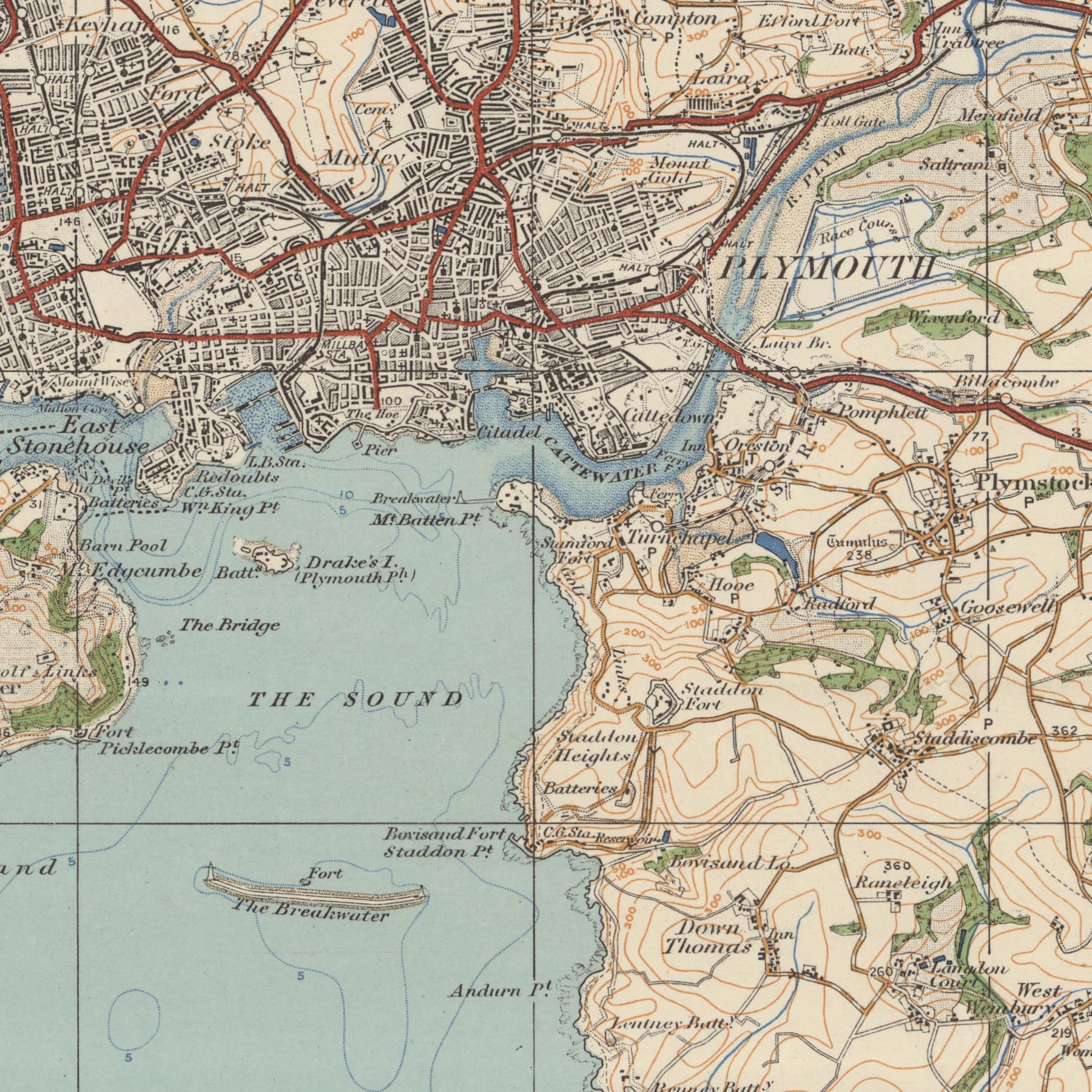 • Plymouth Sound: Un corpo d'acqua di marea utilizzato come rifugio per le navi contro le tempeste.