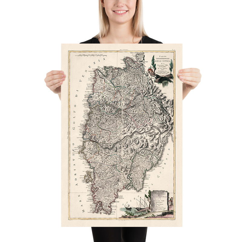Antonio Zatta’s genius lay in orchestrating such harmonies—uniting scholars, engravers, and colorists to produce an atlas at once authoritative and beautiful. In Istria, his press translates Europe’s expanding geographical thought into a page where the data breathe: each boundary crisp, each name a footnote to diplomacy, each cartouche a compact essay in history and taste. Giovanni Valle Giustinoplitano’s contribution is palpable in the confident draftsmanship and measured annotation—a local intelligence rendered legible to a continental audience. As a document, the map records an Enlightenment understanding of space; as an object of art, it speaks to the Venetian eye for ornament. Together, they produce a portrait of the peninsula that endures: precise, eloquent, and quietly enthralling.