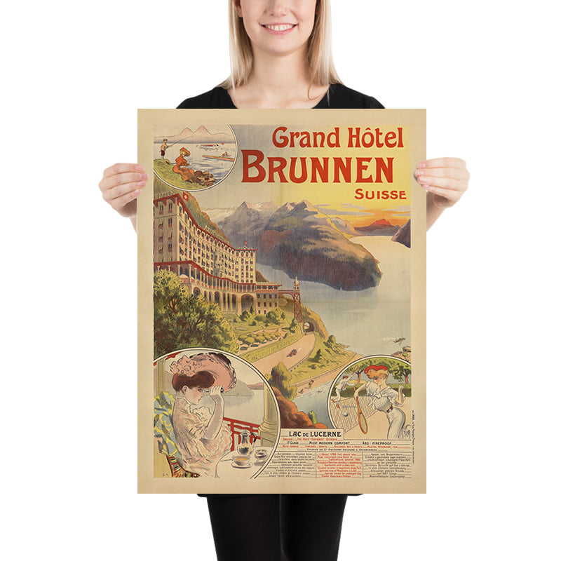 Lake Lucerne Travel Poster: Grand Hôtel Brunnen by Georges Meunier, 1905