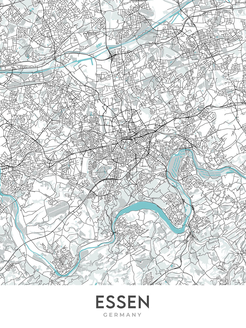 Overall, this map of Essen is a beautiful and informative work of art that captures the essence of this vibrant city. It is a must-have for anyone who loves maps, art, or simply wants to explore the world from the comfort of their own home.