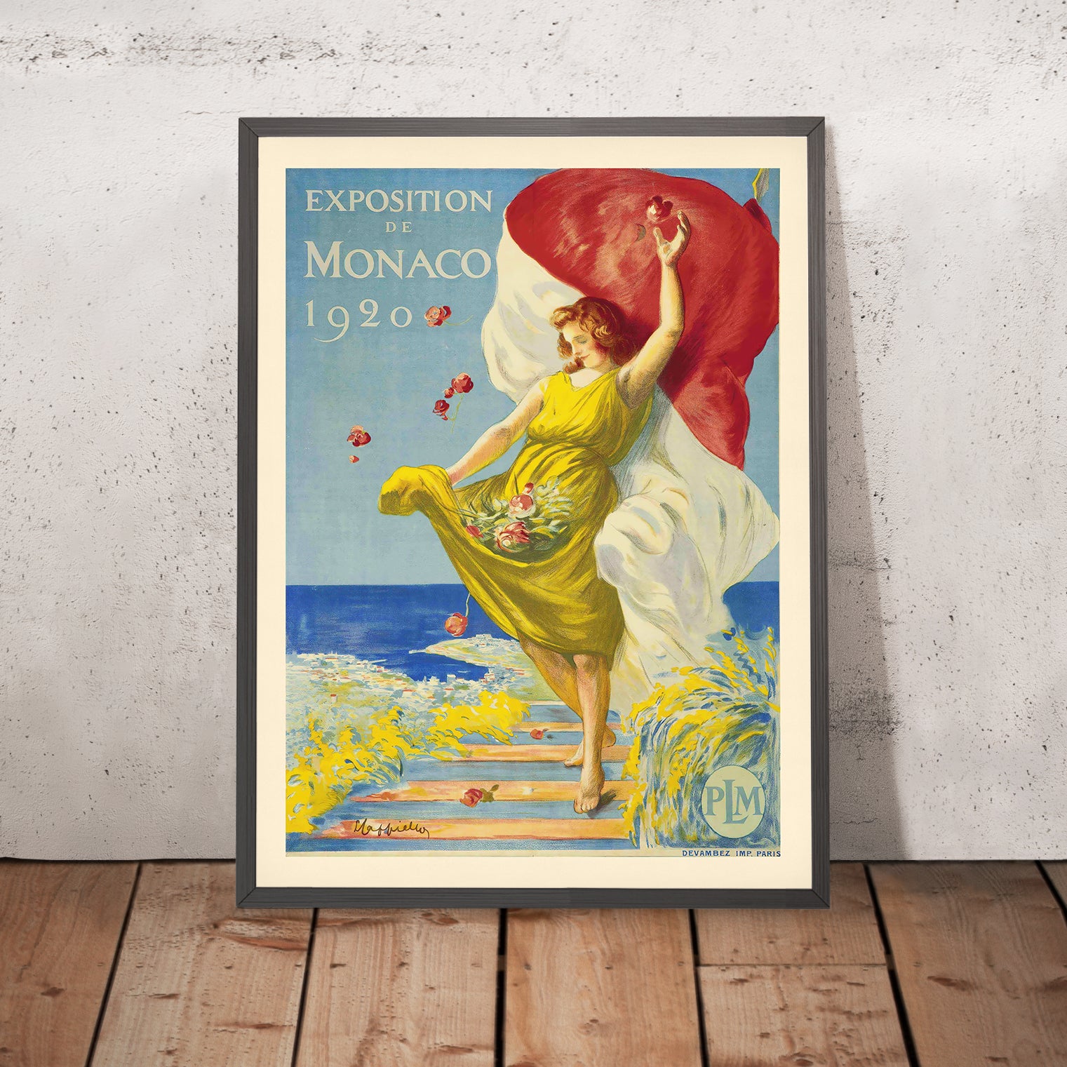 This print brings a touch of Riviera sunshine to interiors from coastal contemporary to mid-century and eclectic spaces. Hang it in a living room, stair hall, or study to conjure holiday light year-round; pair it with natural woods, brass accents, and botanical greens to echo its garden-and-sea motif. For collectors of travel ephemera, Art Nouveau graphics, or those who cherish Monaco, it is both a decorative showpiece and a fragment of cultural history.