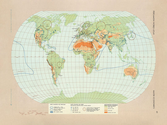 Old Infographic Map of World Water Economics, 1967: Water Utilization, Agriculture, Hydroelectric Power