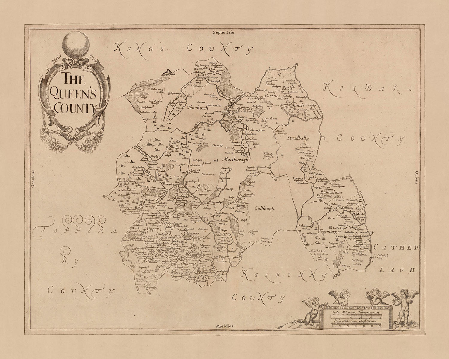 Old Map of County Laois by Petty, 1685: Abbeyleix, Athy, Castlecomer, Durrow, Mountmellick