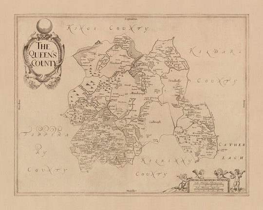 This 1685 map of Queen's County, now known as County Laois, is a fascinating glimpse into the history and geography of this region of Ireland. Created by renowned cartographer Sir William Petty, the map is a detailed and accurate representation of the county, showcasing its cities, towns, landmarks, and natural features.