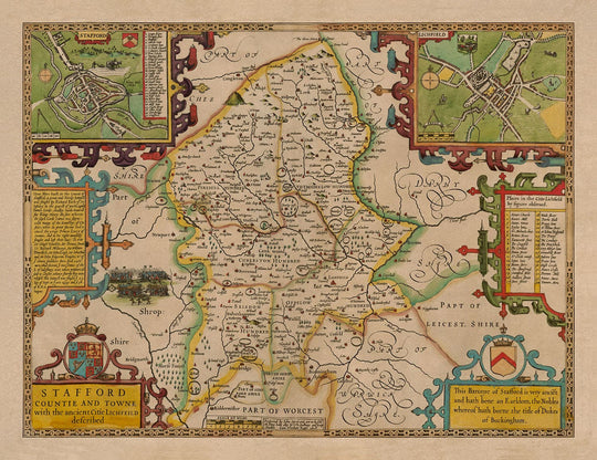 Old Map of Staffordshire, 1611 by John Speed: Stafford, Wolverhampton, Stoke-on-Trent, Lichfield, Birmingham, Dudley, Walsall