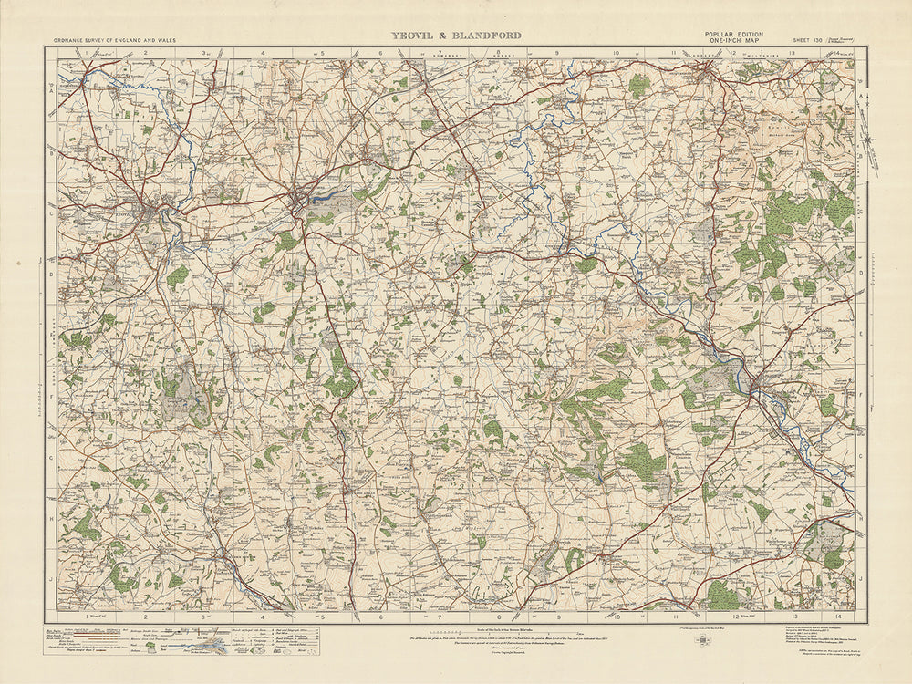 Old Ordnance Survey Map, Sheet 130: Yeovil & Blandford, 1925: Sherborne, Shaftesbury, Ilchester, Maiden Newton, Dorset AONB