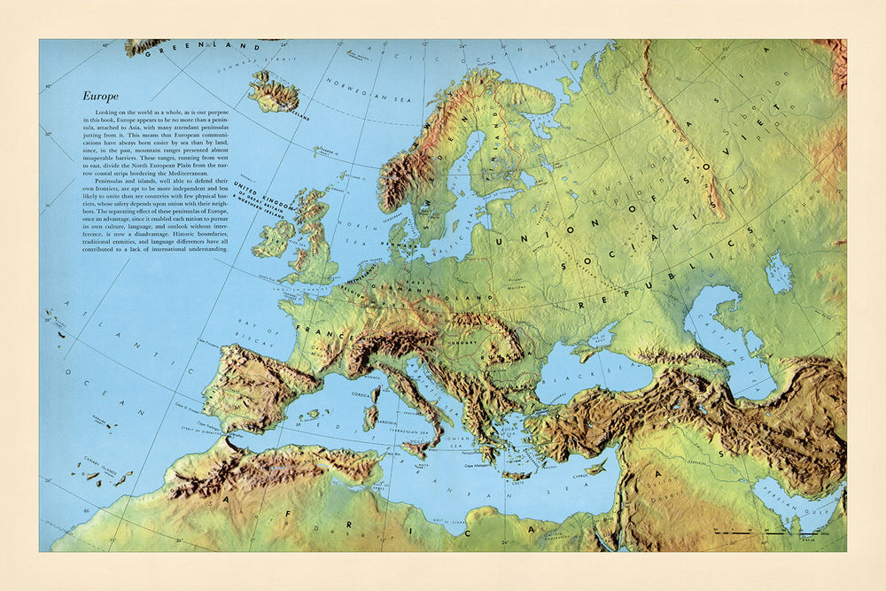 Overall, this map is a valuable and beautiful resource for anyone interested in Europe. It is a detailed physical map, a work of art, and a historical document all in one.